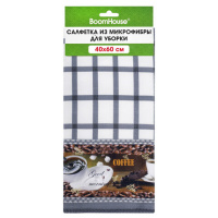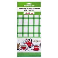 Салфетка из МИКРОФИБРЫ универсальная, 40х60 см, зеленая клетка, орнамент, 240 г/м2, BOOMHOUSE (БУМХА