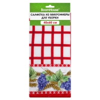 Салфетка из МИКРОФИБРЫ универсальная, 40х60 см, красная клетка, орнамент, 240 г/м2, BOOMHOUSE (БУМХА