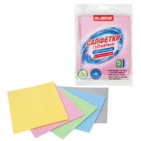 Салфетки губчатые для уборки кухни 15х18 см, ЦЕЛЛЮЛОЗНЫЕ, КОМПЛЕКТ 5 шт., цветные, LAIMA, 700267