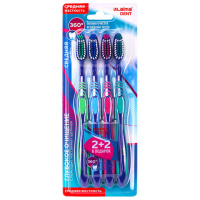 Зубная щетка средней жесткости, с чисткой языка, гибкая, КОМПЛЕКТ 4 шт., LAIMA DENT, 609323