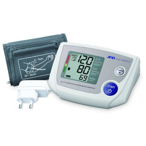 Тонометр AND UA-777AC – простой и функциональный прибор для бытового и профессионального применения с удобным управлением, понятным даже пожилым людям.Цифровой автоматический тонометр AND UA-777AC для измерения артериального давления и частоты пульса с манжетой для рук с длиной окружности плеча 22–32 см и сетевым адаптером. Предназначен для применения в качестве индивидуального средства контроля артериального давления и частоты пульса.
