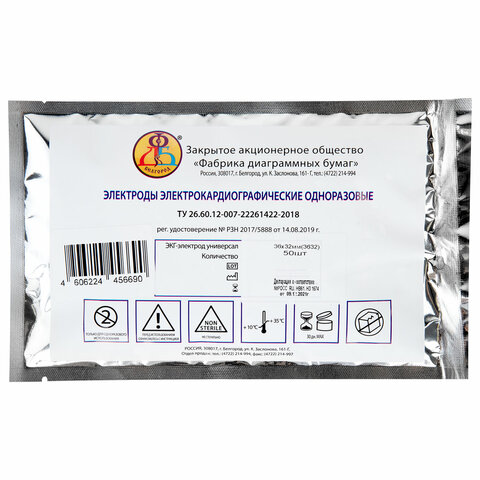 Электроды для ЭКГ одноразовые, 36х32 мм, КОМПЛЕКТ 50 шт., универсальные на полимерной основе, 3632 отзывы