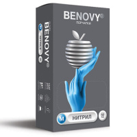Перчатки нитриловые смотровые 50 пар (100 штук), размер 7-8, M (средний), голубые BENOVY Nitrile Chl