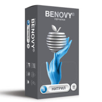 Перчатки нитриловые смотровые 50 пар (100 штук), размер 8-9, L (большой), голубые, BENOVY Nitrile Ch