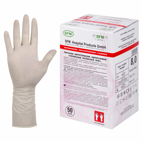 Перчатки хирургические SFM предназначены для дополнительной защиты пациентов и пользователей во время медицинской операции, биологических исследований, осмотра в стоматологическом кабинете.Перчатки стерильные, неопудренные. Разделяются на левую и правую для меньшего напряжения в руках. Имеют текстурированную поверхность по всей площади, что помогает избегать скольжения.