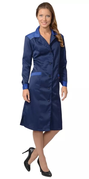 Воротник английский, застёжка на пуговицы, карманы. Рукава с манжетами. СО кант по кокеткам. ГОСТ 12.4.131-83.