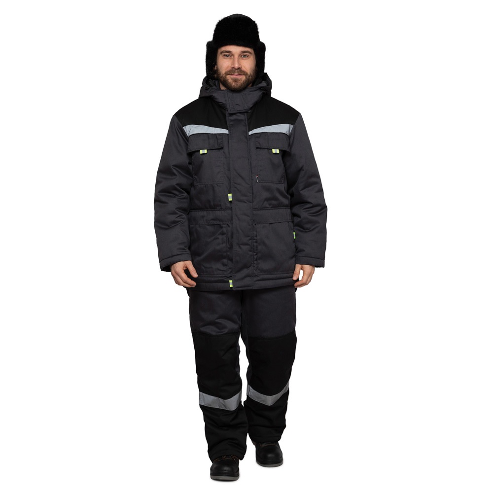 Куртка: прямого силуэта с удлинённой спинкой, с притачной утеплённой подкладкой, с застёжкой на двухзамковую молнию с утеплённой ветрозащитной планкой сверху молнии на левом борту и дополнительной ветрозащитной планкой под молнией на правом борту. Рукава втачные, двухшовные, подкладка рукава с манжетой. Воротник-стойка, внутренняя часть из флиса. Объём куртки по талии и по низу регулируется кулиской с эластичным шнуром и фиксаторами.