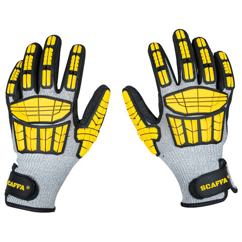 Перчатки защитные противоударные SCAFFA Ударник отлично защищают от ударов благодаря вставкам из термопласта на тыльной стороне ладони. Функция Touch Screen позволяет пользоваться сенсорным экраном не снимая перчатки. HPPE/Стальное волокно. Можно стирать.Перчатки предназначены для защиты от ударов и порезов. Основа состоит из нейлона, HPPE волокна, стального волокна.